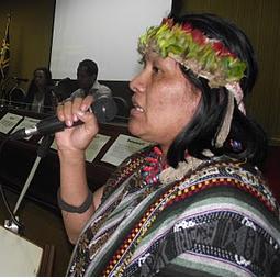 Na plateia, o assombro das pessoas e o que está por chegar aos ouvidos foge dos limites da imaginação. Silencio espectral. A quietude contida na respiração. O seminário pró Tribunal popular da Terra no Mato Grosso do Sul atinge um dos seus momentos mais significativos. O auditório “A” da UCDB de Campo Grande, no dia 24 de setembro, foi o cenário de denúncias e proclamações. Uma mulher indígena, professora e filha de uma das tantas lideranças assassinadas no Estado, faz um comovente depoimento. A missão dela não é fácil. Relatar como atuaram os órgãos do governo e os pistoleiros juntos em 13 de janeiro de 2003 na ação que terminou com a morte de seu pai Marcos Verón, até então cacique kaiowa-Guarani da terra indígena Taquara, município de Juti/MS. Naquela data, mais uma vez, pistoleiros atropelam a comunidade em busca de despejo, de violência. Valdelice Verón vai além. Contextualiza a luta de seu povo, de sua comunidade, de sua família nuclear extensa. Descreve com realismo e emociona-se com a forma cruel que mataram seu pai. E ainda esboça momentos atuais do sofrimento do povo Kaiowá-Guarani e de outros povos indígenas no MS por conta da violência, da discriminação e negação de direitos.