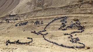 Escolhi a foto de Ammar Awad/Reuters para ilustrar o poema; a imagem é formada por crianças refugiadas palestinas, numa enorme representação da “Pomba da Paz” (1949), do pintor Pablo Picasso.