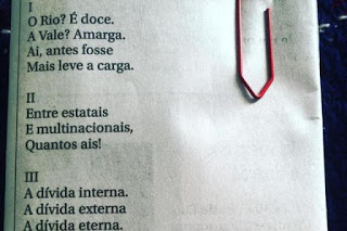 Começou com um texto assinado pela jornalista Mariana Filgueiras no jornal O Globo deste fim de semana. Ao recuperar obras literárias e musicais que já haviam abordado a paisagem e as águas do agora destruído Rio Doce, a reportagem evocava, entre outras canções, versos e trechos de prosa, um poema de Carlos Drummond de Andrade (1902-1987), Lira Itabirana, que logo, fotografado diretamente da edição do jornal, tornou-se viral devido ao caráter “profético” de suas palavras: